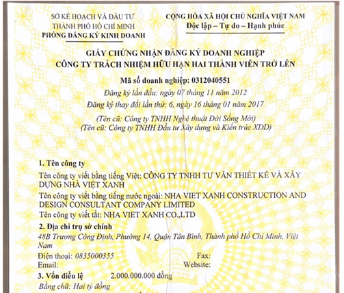 Nhà Việt Xanh là đơn vị hiếm hoi trong ngành biệt thự tư nhân có chứng chỉ năng lực hoạt động xây dựng hạng II, được Sở Xây dựng TP.HCM cấp phép và công bố tại cổng thông tin năng lực quốc gia:
