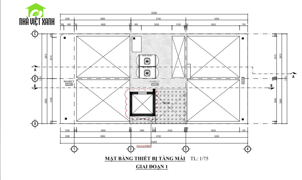 Tầng mái: Bồn nước, hệ thống máy năng lượng, kỹ thuật