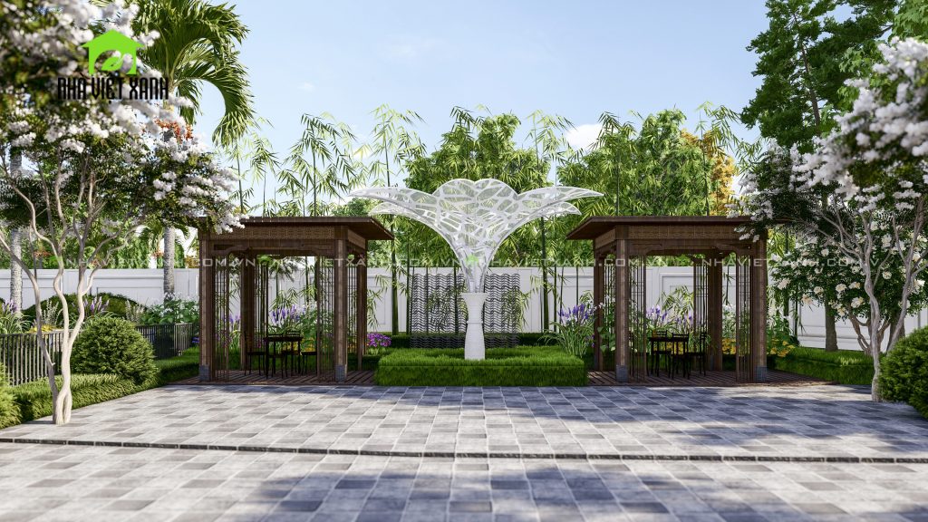 • Cảnh quan không chỉ là điểm nhấn thẩm mỹ mà còn tạo ra một vùng đệm lý tưởng giữa thiên nhiên và không gian sống
