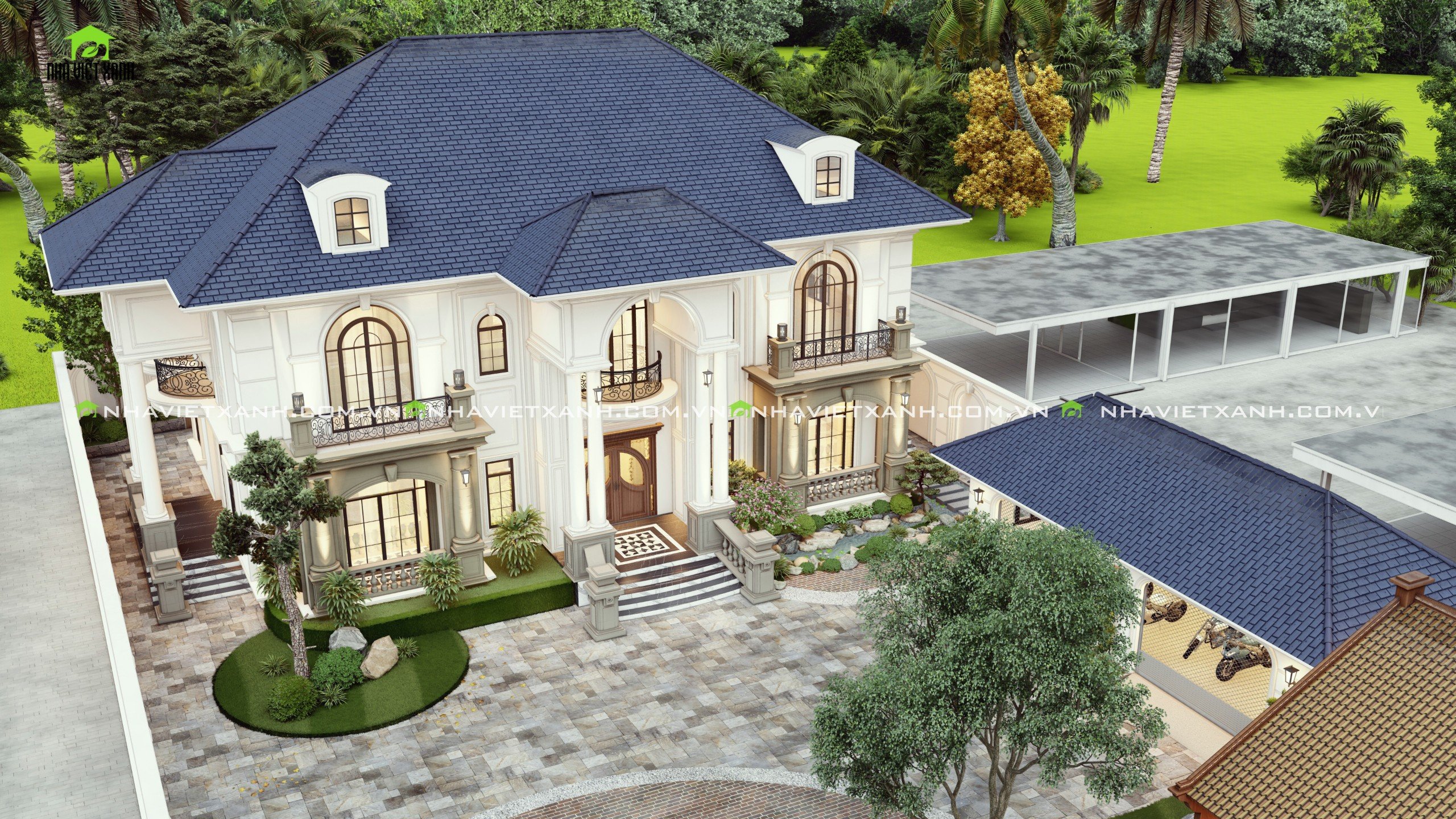 Mẫu thiết kế biệt thự mái Nhật tân cổ điển mặt tiền 21m dành riêng cho người xây biệt thự ở Bình Dương