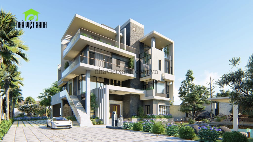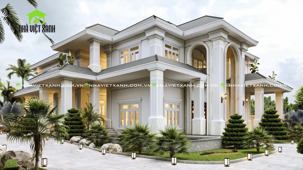 - Quy mô: Biệt thự 2 tầng, mái bằng hiện đại