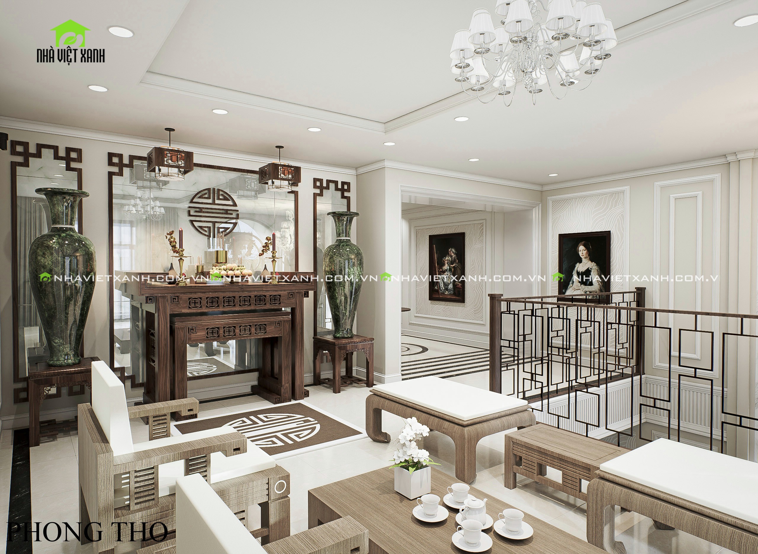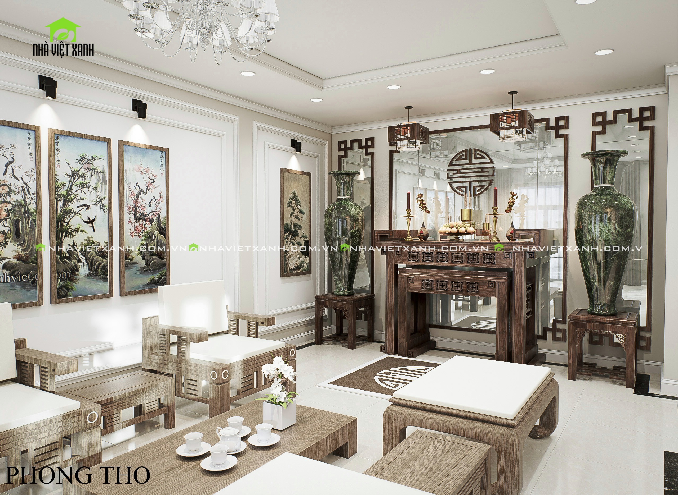 • Phòng thờ: Thiết kế chuẩn phong thủy Á Đông, sử dụng đồ nội thất gỗ tự nhiên đẳng cấp.