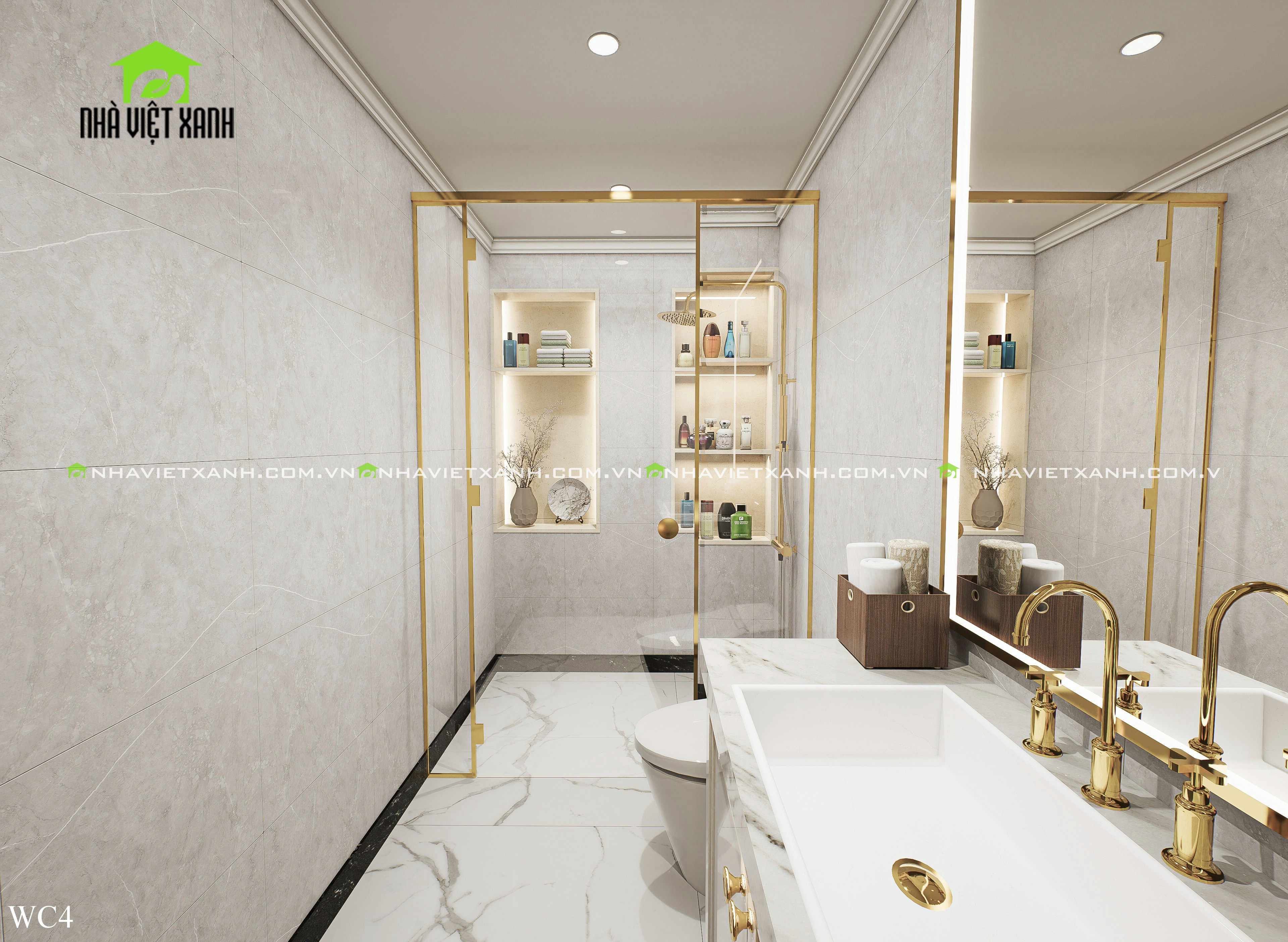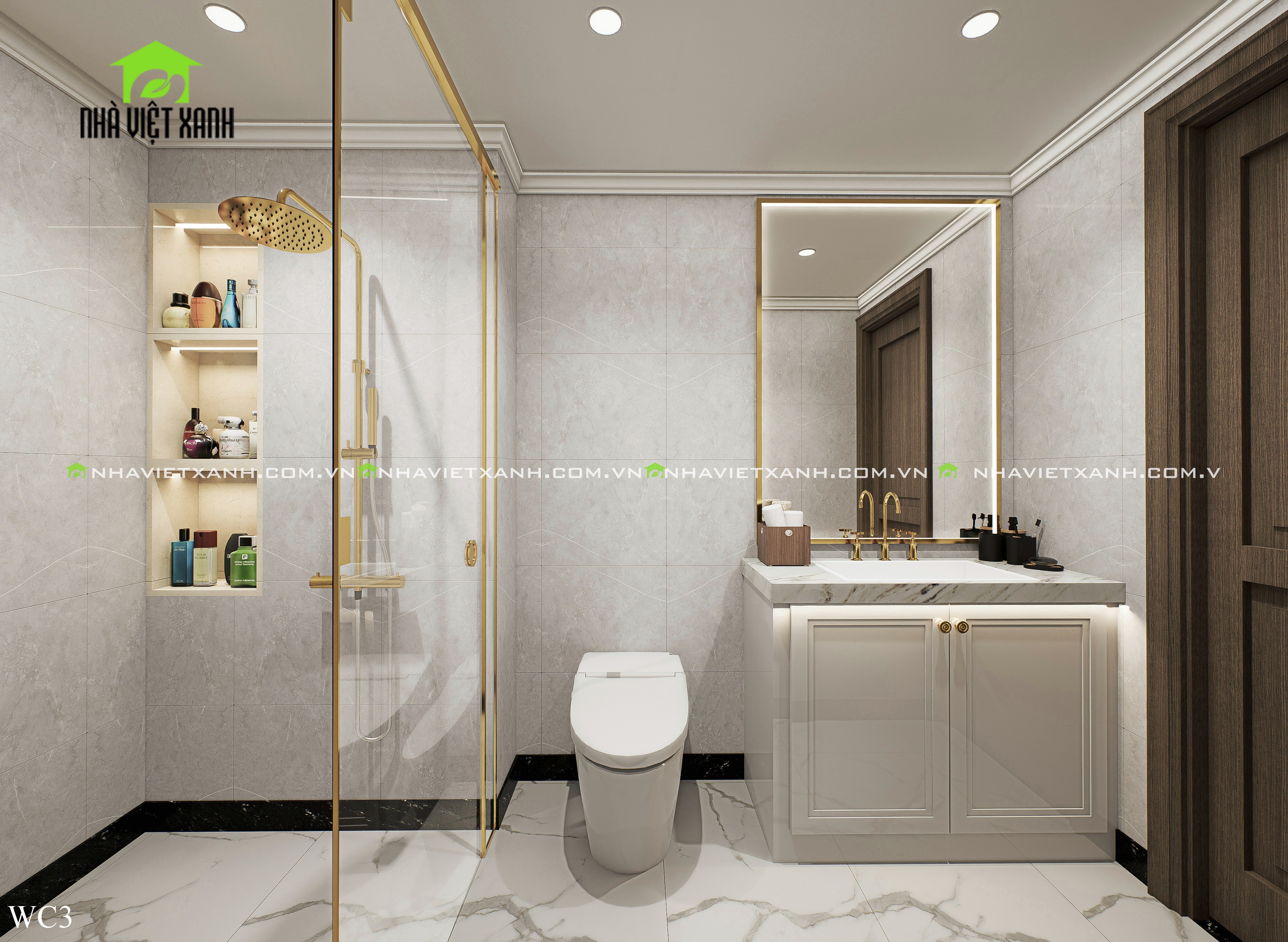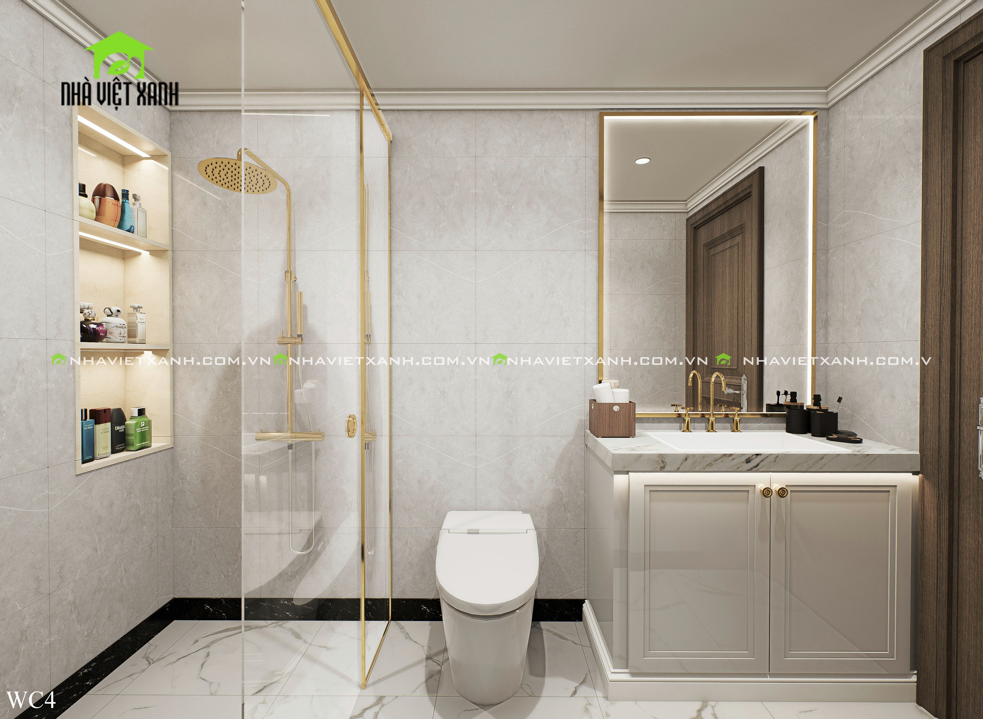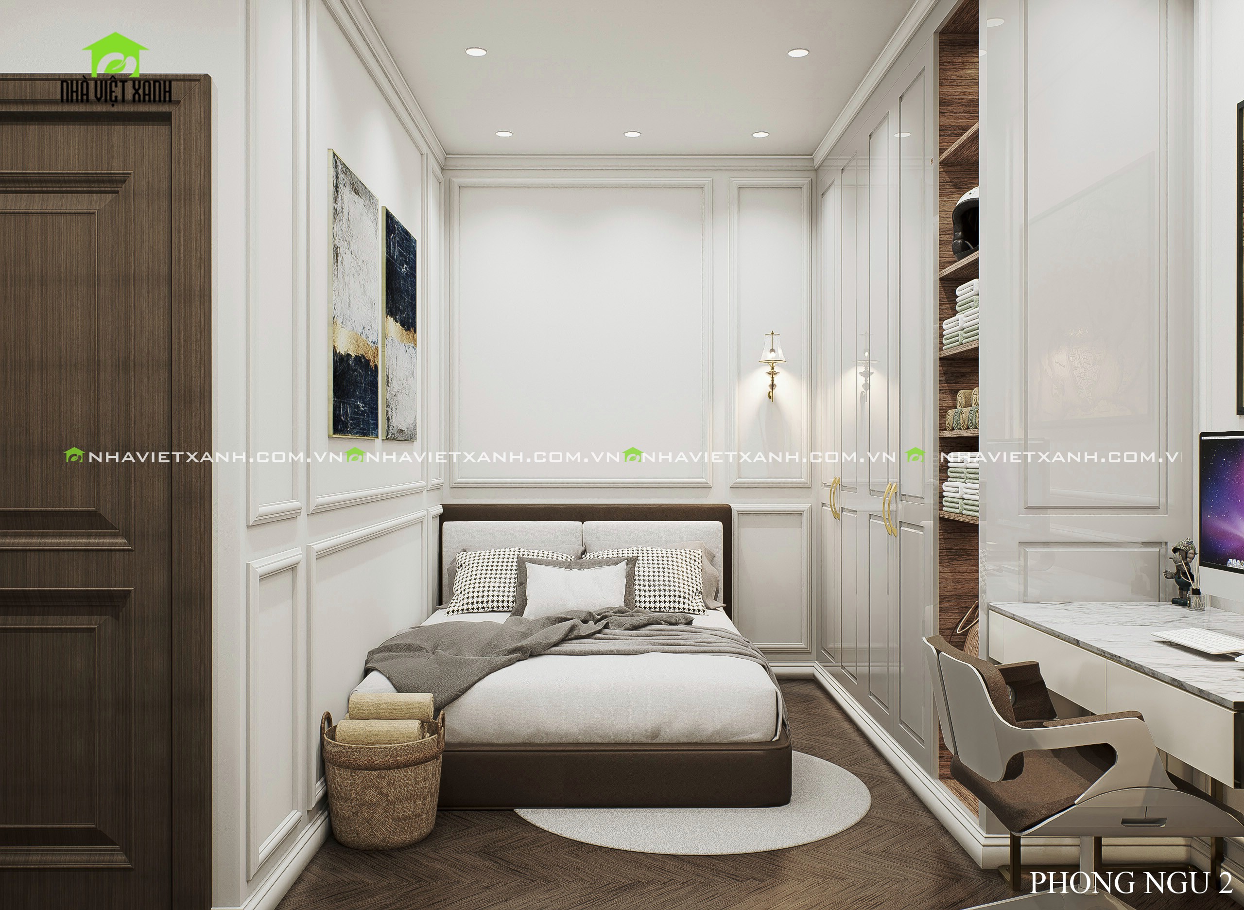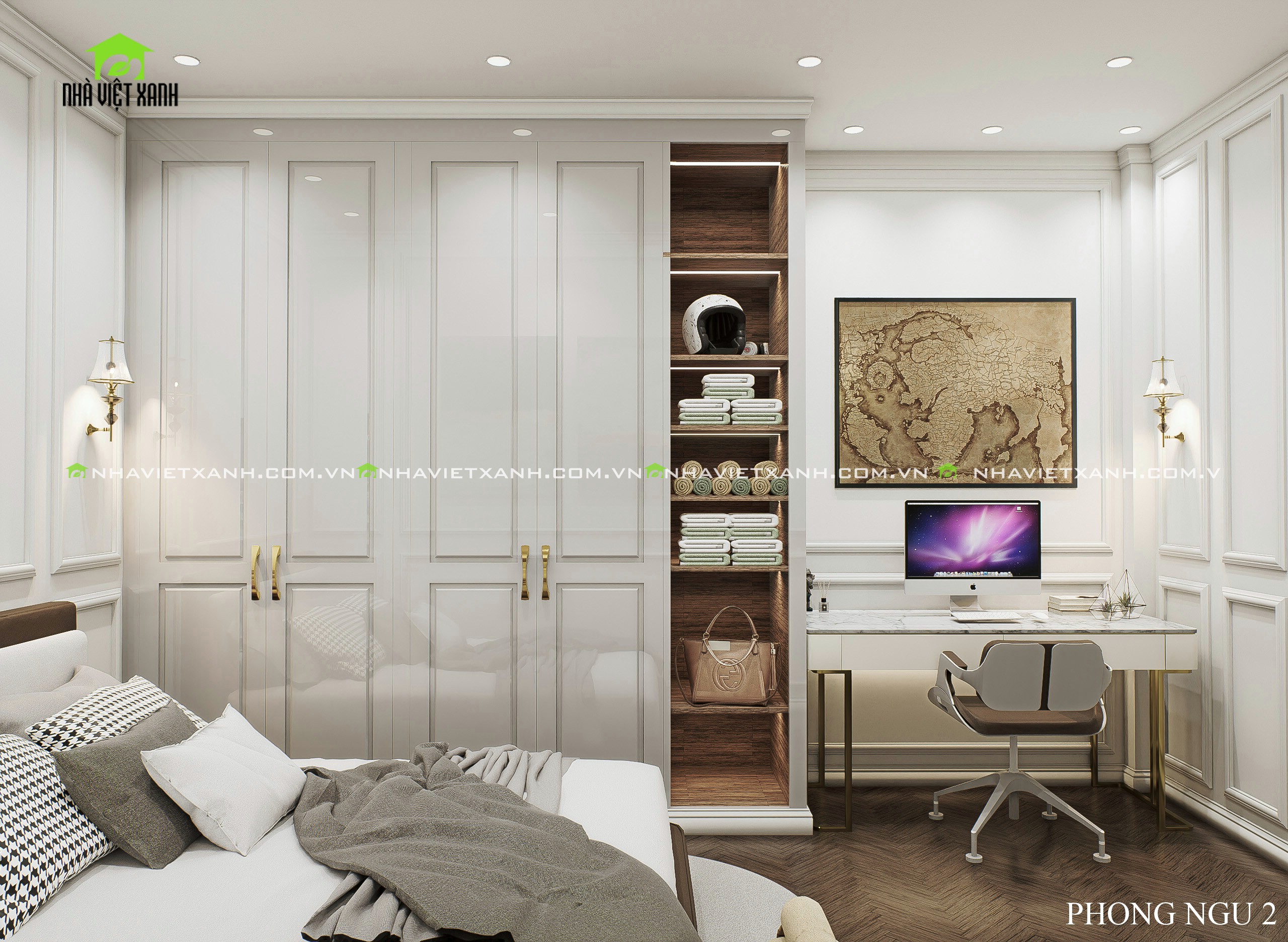 • Phòng ngủ master: Rộng rãi, tích hợp bàn trang điểm, kệ tivi và không gian đọc sách riêng tư.