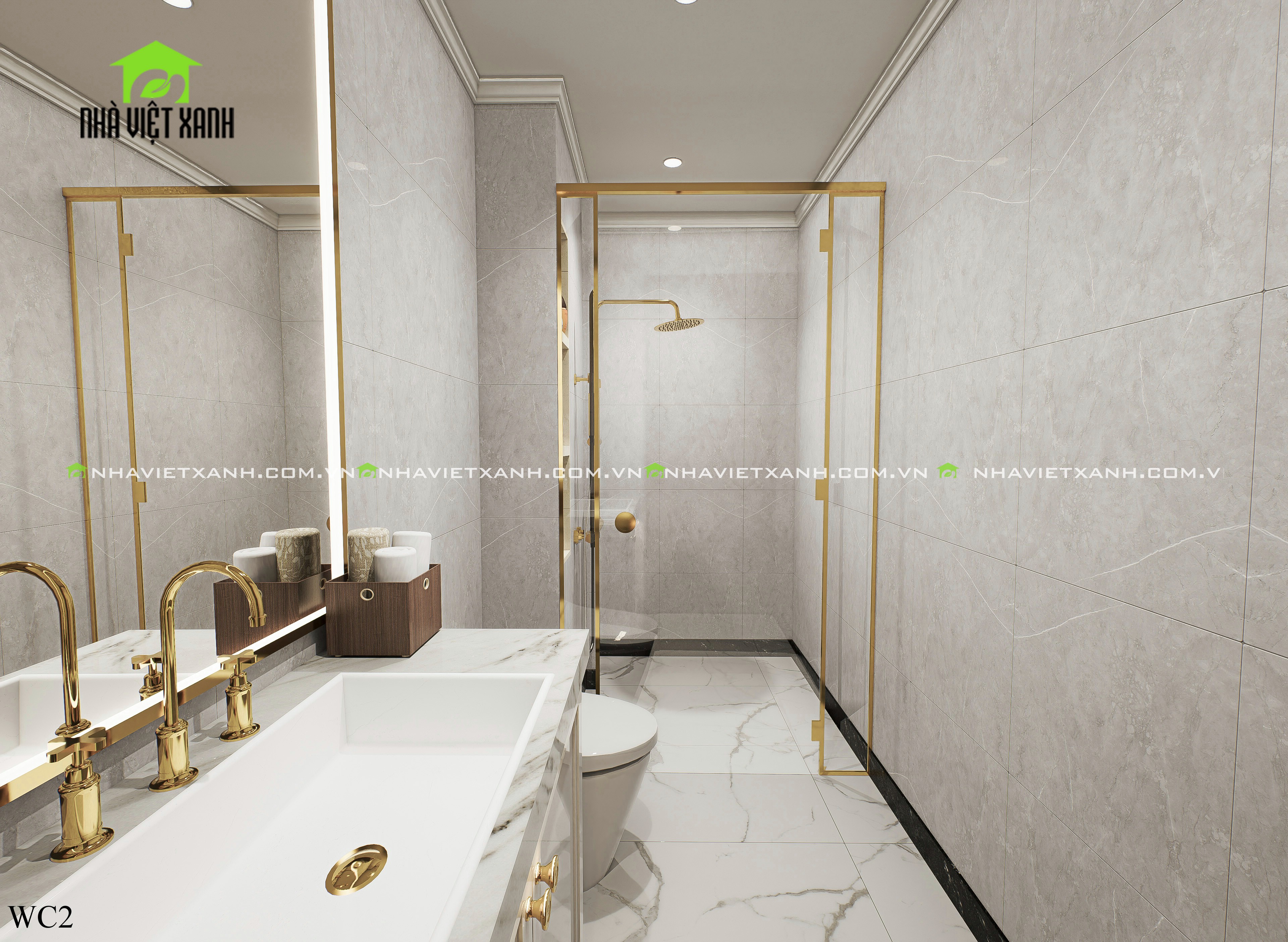 • Tầng trệt: phòng khách, 2 phòng ngủ, khu vực bếp và bàn ăn, sàn nước, wc chung