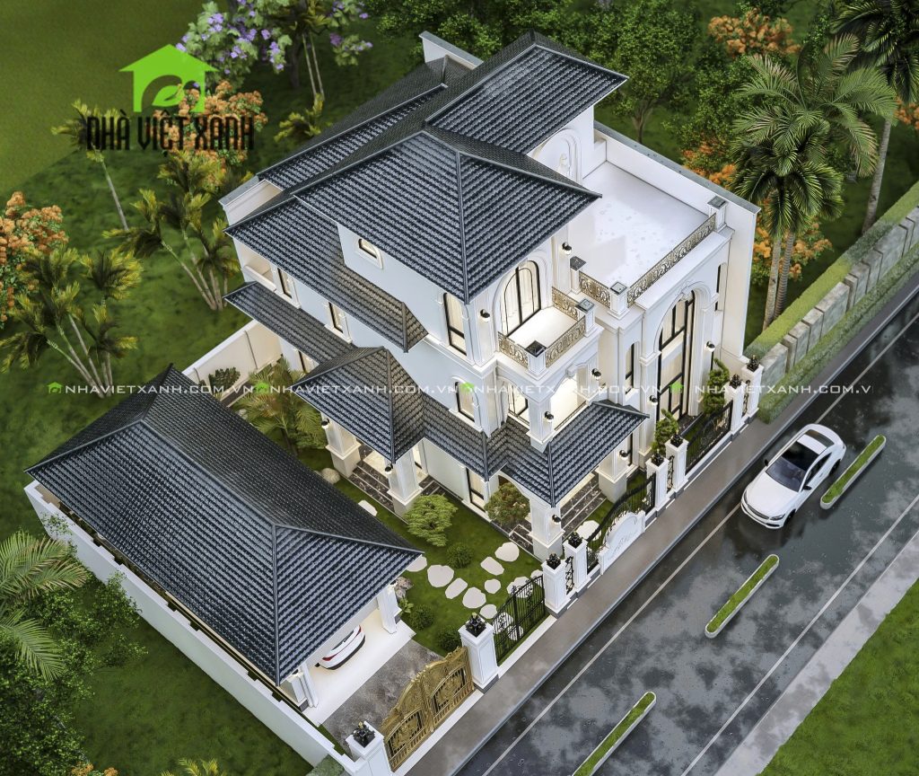 Thiết kế biệt thự tân cổ điển mái Nhật mặt tiền 10m – Anh Phúc, Hóc Môn