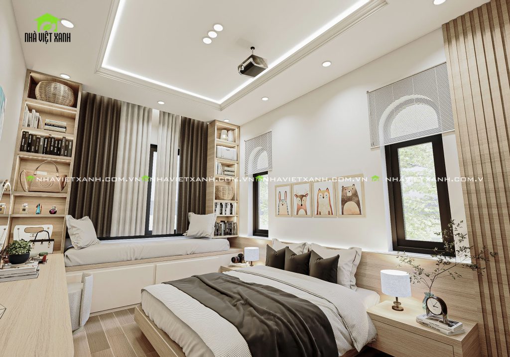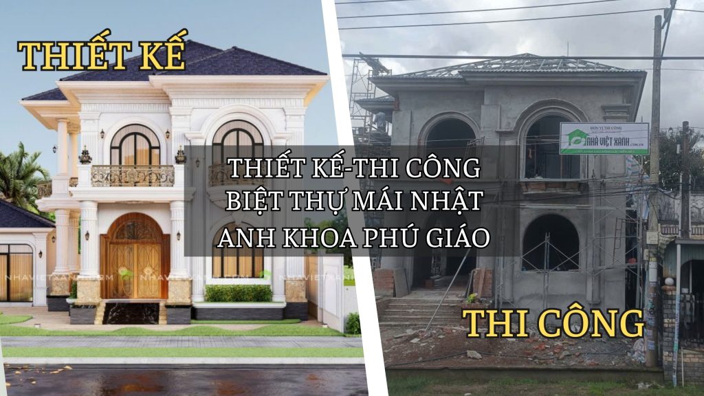 Mẫu biệt thự mái Nhật của anh Khoa tại Phú Giáo (Bình Dương) là một trong những công trình nổi bật do Nhà Việt Xanh thiết kế và thi công. Sở hữu mặt tiền 9m với phong cách sang trọng, nhẹ nhàng nhưng vô cùng đẳng cấp, mẫu biệt thự này không chỉ chinh phục người đối diện bằng vẻ đẹp ngoại thất mà còn gây ấn tượng mạnh mẽ nhờ công năng khoa học và nội thất gỗ tự nhiên sang trọng.